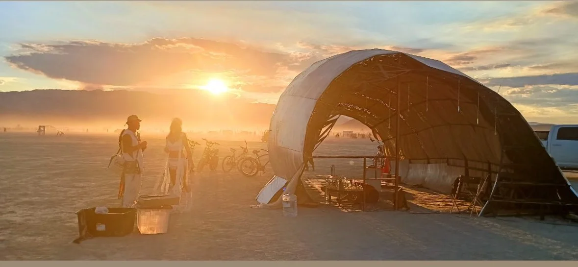 We create art that blurs the lines between architecture and emotion. At Burning Man, the purpose is to be inspired and create out of context. We unlearn and experience an invisible field where light, sound, and vibration become one.